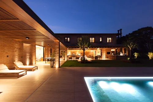 A área social da casa esta toda voltada para o gramado, piscina e o horizonte.